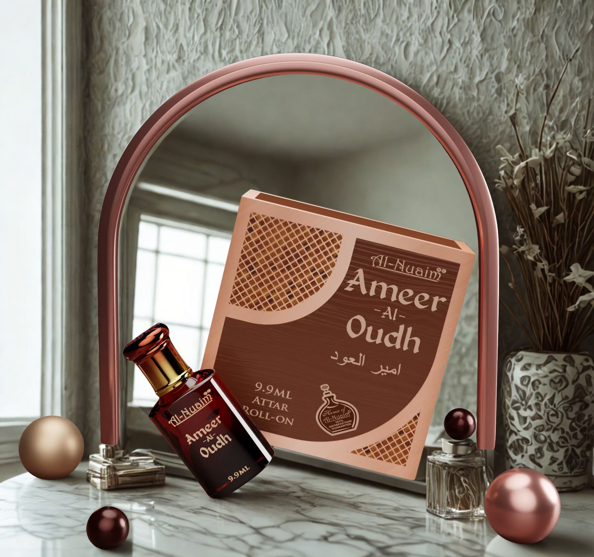 - Middle Notes: Exotic Oud, Warm Amber, Floral Jasmine
